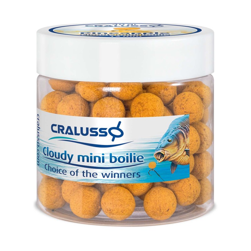 Feeder és ponty horgászok részére készült mini bojlik, többféle ízben, színben és méretben állnak a horgászok rendelkezésére. Az intenzíven aromázott, színezett bojlik homogén anyag szerkezete, folyamatosan engedi magából a csalogató aroma felhőt. Oldódás közben a felületén plazmaszerű, selymes tapintású burkolat keletkezik, melyet a halak különösen kedvelnek. A Cloudy mini bojlik kiemelkedő fogást eredményeztek - a Cralusso teszthorgászai által - a hazai és nemzetközi vizeken végzett tesztelések során! A mini bojlikhoz kapcsolódó fejlesztésünk a CRALUSSO 3 az 1-ben műanyag csalitüskéje.