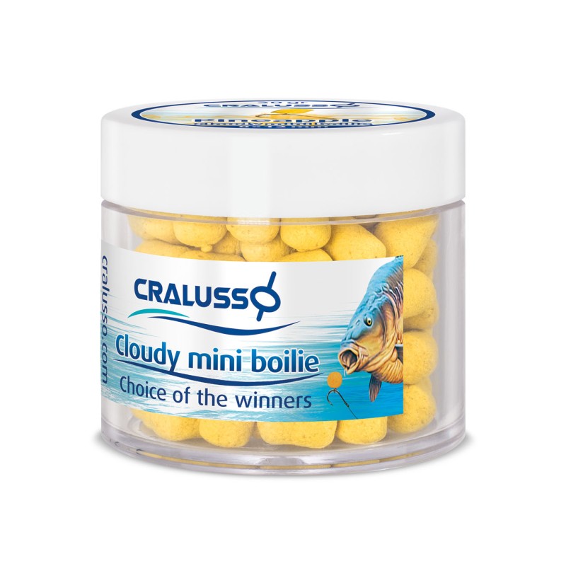 Feeder és ponty horgászok részére készült mini bojlik, többféle ízben, színben és méretben állnak a horgászok rendelkezésére. Az intenzíven aromázott, színezett bojlik homogén anyag szerkezete, folyamatosan engedi magából a csalogató aroma felhőt. Oldódás közben a felületén plazmaszerű, selymes tapintású burkolat keletkezik, melyet a halak különösen kedvelnek. A Cloudy mini bojlik kiemelkedő fogást eredményeztek - a Cralusso teszthorgászai által - a hazai és nemzetközi vizeken végzett tesztelések során! A mini bojlikhoz kapcsolódó fejlesztésünk a CRALUSSO 3 az 1-ben műanyag csalitüskéje.