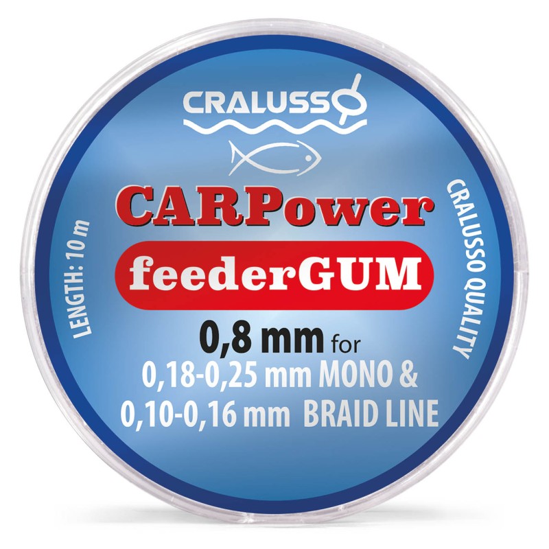 A CARPower erőgumi alkalmazásával, nagyságrendekkel növelhetjük fogási esélyünket feeder és ponty horgászatnál a megakasztott halakkal szemben. Csillapítja a hirtelen fellépő erőhatásokat, bevágásnál, vagy a hal fárasztása során. Ez a különleges minőségű erő gumi a terhelés mértékével arányosan, egyenletesen erősödik és nyúlik, az eredeti hossz 4-szeresére. Method feedernél és egyéb más finom szerelékes horgászmódszernél, lényeges az összeállított felszerelés harmóniája, ezért a mérések és tesztek eredményeképp a CARPower erőguminknál egyedülálló módon, a javasolt zsinór átmérőt is megadtuk, milyen vastagságú damilhoz ajánljuk a használatát, az eredményes összehangolt szerelék elkészítéséhez.
