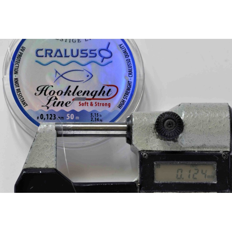 Vékonyabb, erősebb előke zsinórok használatával eredményesebbek lehetünk a vízparton. A halak hamarabb felveszik a kisebb méretű horgon és vékonyabb, lágy damilon kínált csalinkat, ezáltal több kapásunk és még több halunk lehet. A főzsinórtól vékonyabb előke damil a horog beakadásánál megakadályozza, hogy esetleg az egész szerelékünk beszakadjon. Az előke zsinór engedni fog és így csak a horgunk marad le. A finom szerelékes horgászathoz használt horog előkének színtelennek, lágynak, jó csomótűrőnek, és a lehető legerősebbnek kell lennie! Ezen paraméterek figyelembevételével készült a Cralusso Hook Length Line, melyet arra terveztünk, hogy tökéletes, megbízható kapcsolatot biztosítson a főzsinórunk és a horog között.