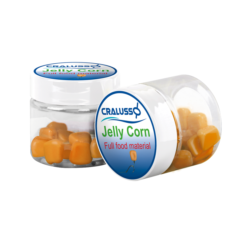 A Cralusso által kifejlesztett és gyártott új, környezetbarát Jelly Corn gumi kukoricák, élelmiszer ipari, alapanyagok felhasználásával készülnek. A természetes alapanyagokból gyártott, Jelly Corn, a már ismert gumi kukoricához hasonlóan, rugalmas állagú. Ez az új generációs gumi kukorica, a halak számára emészthető, lebomló horogcsali. Az ételfestékekkel színezett, különböző ízű Jelly Corn kukoricákat a halak szívesen fogadják, rendkívül eredményes horgászatot tesznek lehetővé.