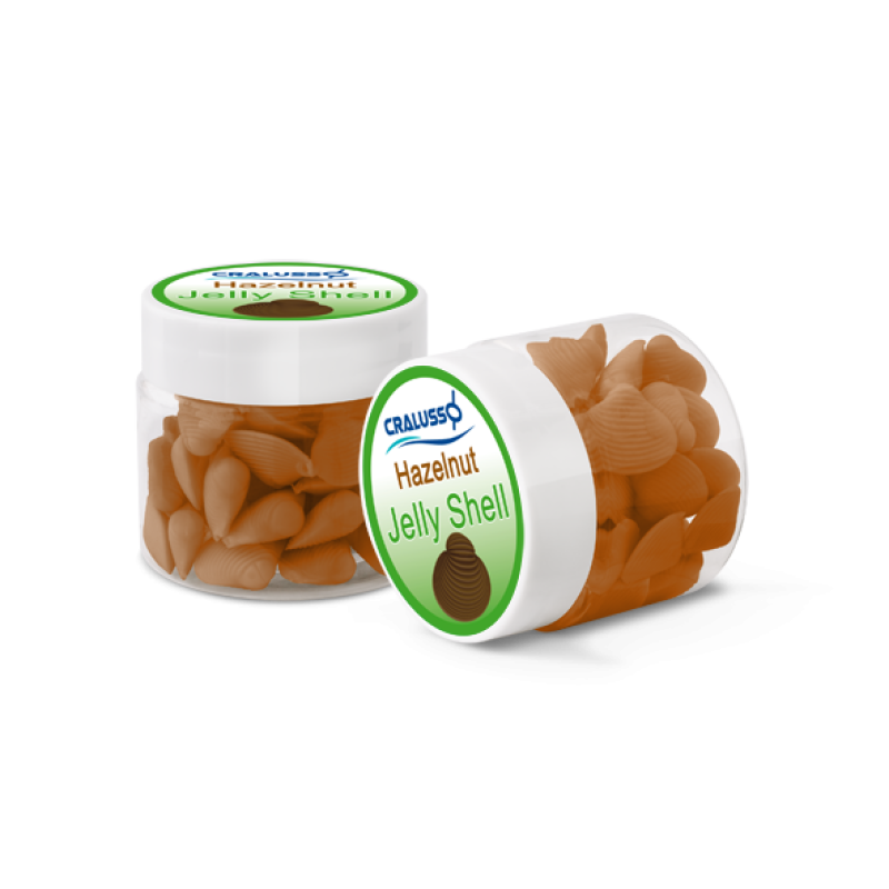 A Cralusso által kifejlesztett és gyártott új, környezetbarát Jelly Shell élelmiszer ipari, alapanyagok felhasználásával készülnek. A természetes alapanyagokból gyártott Jelly Shell a már ismert gumi kukoricához hasonlóan, rugalmas állagú. Ez az új generációs kagyló formájú horogcsali a halak számára emészthető, lebomló. Az ételfestékekkel színezett, különböző ízű Jelly Shell-t a halak szívesen fogadják, rendkívül eredményes horgászatot tesznek lehetővé.