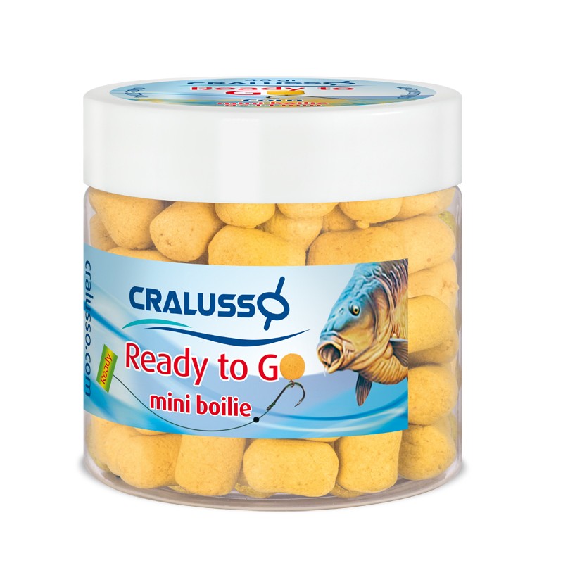 A Cralusso feeder programjának egyik nagyon praktikus újdonságát, sok horgász fogja kedvelni. Nem kell bajlódni a method előke és csalitüske megkötésével, összeállításával, a csali besúlyozásával. A Cralusso cég, Ready to Go névre keresztelt horogcsalis dobozaiban, egy előkötött, használatra kész csalitüskés előkéket találunk. A szerelék minden része harmonizál, az adott méretű csalihoz, optimális méretű és súlyozott horoggal és hozzá illő vastagságú előkével kerül a dobozba. Nincs más dolgunk, mint a kész, csalizott előkét felakasztani a szerelék method kapcsába. A Ready to Go minibojlik különböző ízekben, színekben, 8-8x12-10 és 9x11 mm-es méretben kerülnek forgalomba.